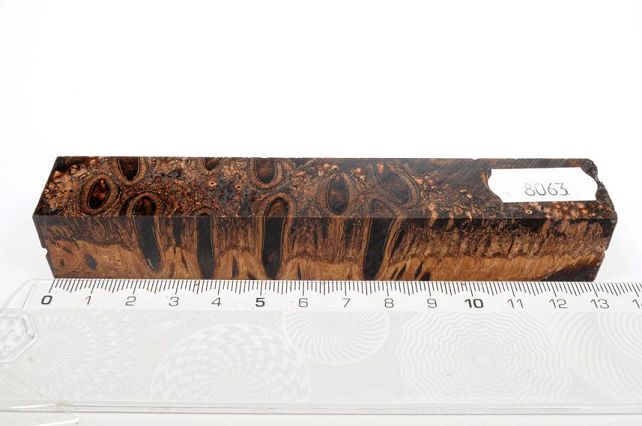 Die Samenöffnungen wurden mit gefärbtem Kunstharz unter Vakuum verfüllt und zu Pen Blanks verarbeitet