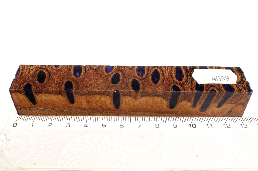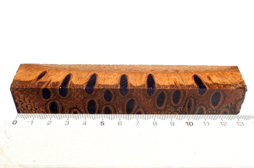 Die Samenöffnungen wurden mit gefärbtem Kunstharz unter Vakuum verfüllt und zu Pen Blanks verarbeitet