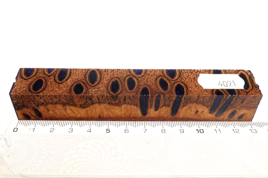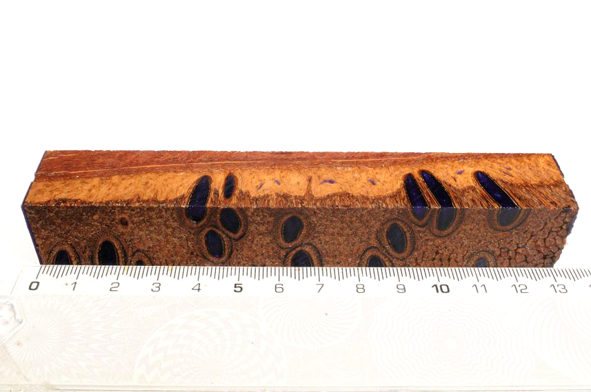 Die Samenöffnungen wurden mit gefärbtem Kunstharz unter Vakuum verfüllt und zu Pen Blanks verarbeitet