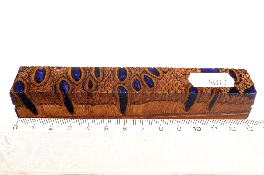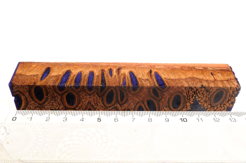 Die Samenöffnungen wurden mit gefärbtem Kunstharz unter Vakuum verfüllt und zu Pen Blanks verarbeitet