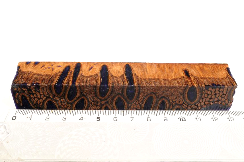 Die Samenöffnungen wurden mit gefärbtem Kunstharz unter Vakuum verfüllt und zu Pen Blanks verarbeitet