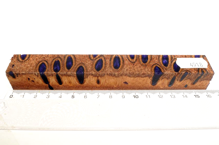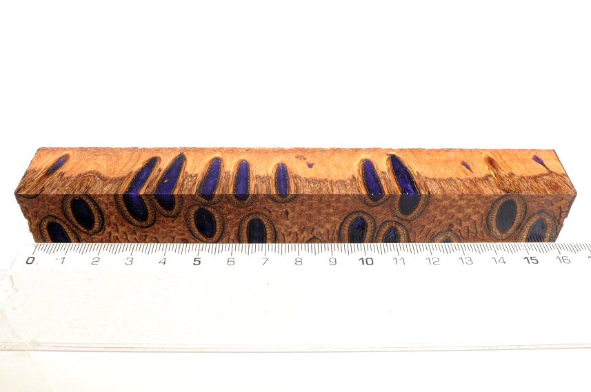 Die Samenöffnungen wurden mit gefärbtem Kunstharz unter Vakuum verfüllt und zu Pen Blanks verarbeitet