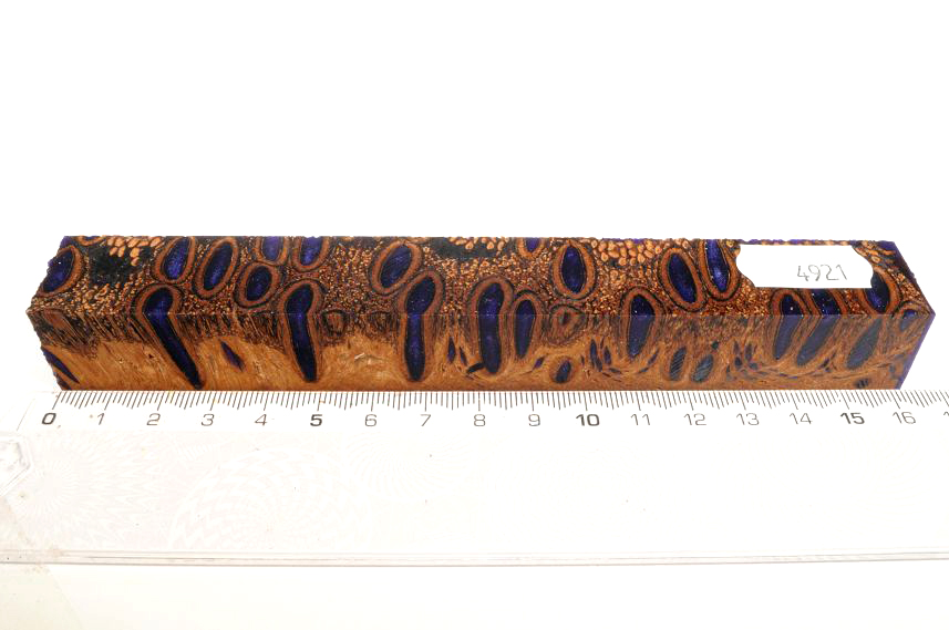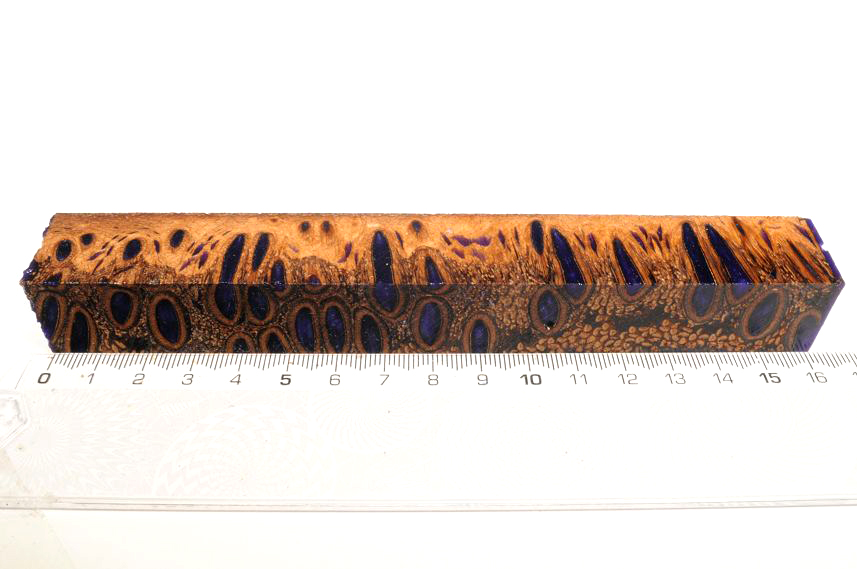 Die Samenöffnungen wurden mit gefärbtem Kunstharz unter Vakuum verfüllt und zu Pen Blanks verarbeitet