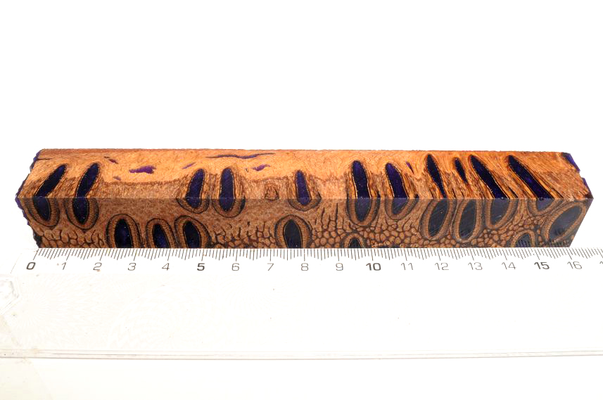 Die Samenöffnungen wurden mit gefärbtem Kunstharz unter Vakuum verfüllt und zu Pen Blanks verarbeitet