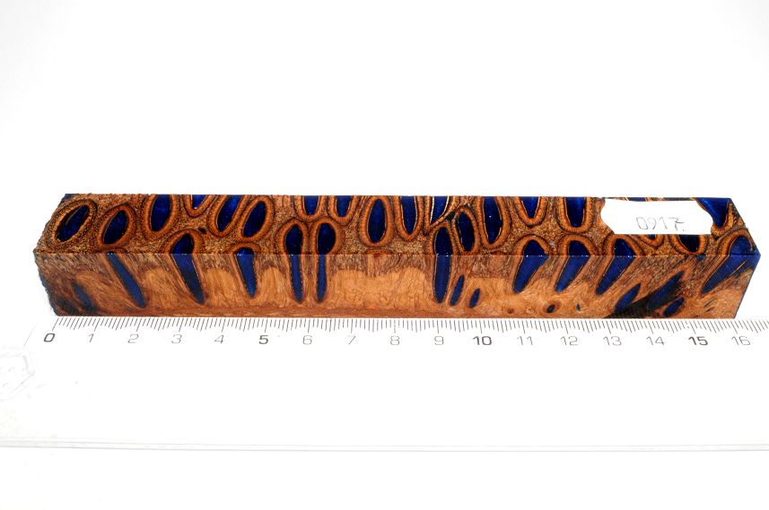 Die Samenöffnungen wurden mit gefärbtem Kunstharz unter Vakuum verfüllt und zu Pen Blanks verarbeitet