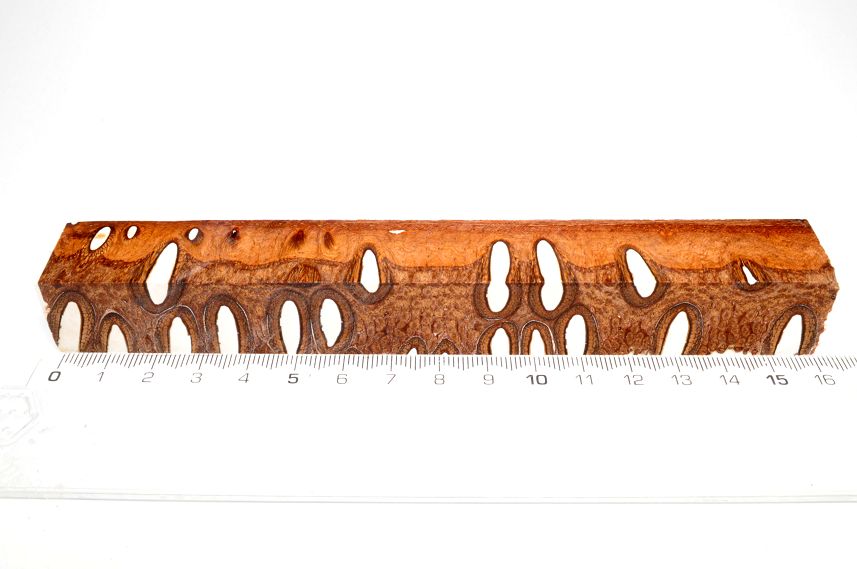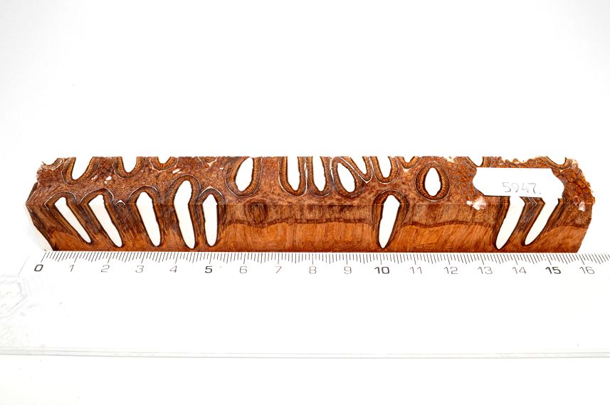 Die Samenöffnungen wurden mit gefärbtem Kunstharz unter Vakuum verfüllt und zu Pen Blanks verarbeitet