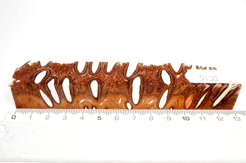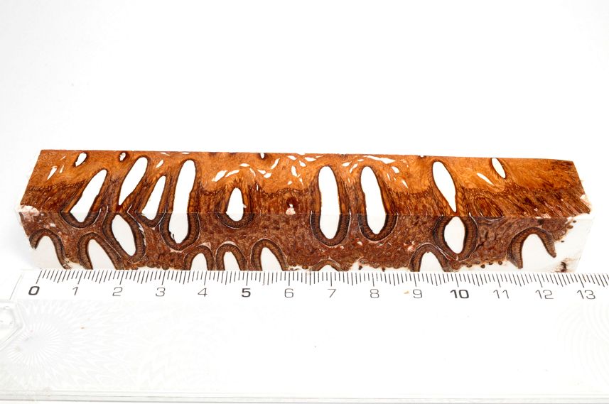Die Samenöffnungen wurden mit gefärbtem Kunstharz unter Vakuum verfüllt und zu Pen Blanks verarbeitet