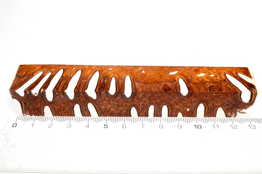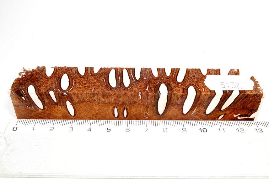 Die Samenöffnungen wurden mit gefärbtem Kunstharz unter Vakuum verfüllt und zu Pen Blanks verarbeitet