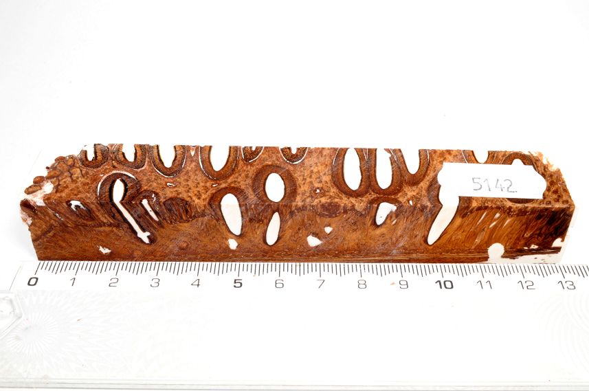Die Samenöffnungen wurden mit gefärbtem Kunstharz unter Vakuum verfüllt und zu Pen Blanks verarbeitet