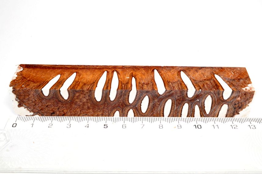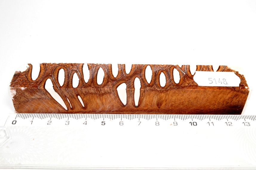 Die Samenöffnungen wurden mit gefärbtem Kunstharz unter Vakuum verfüllt und zu Pen Blanks verarbeitet