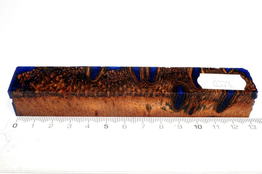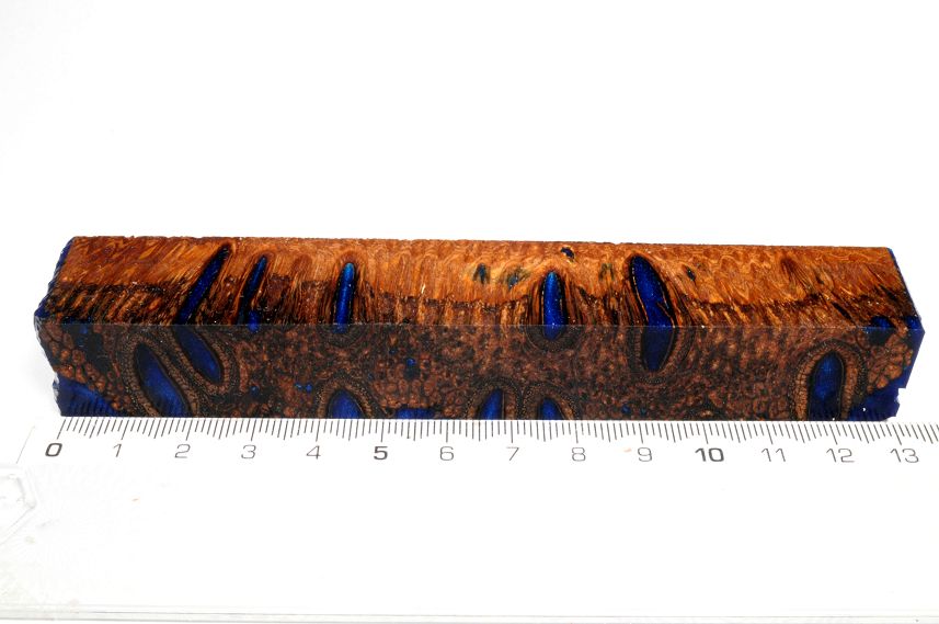 Die Samenöffnungen wurden mit gefärbtem Kunstharz unter Vakuum verfüllt und zu Pen Blanks verarbeitet