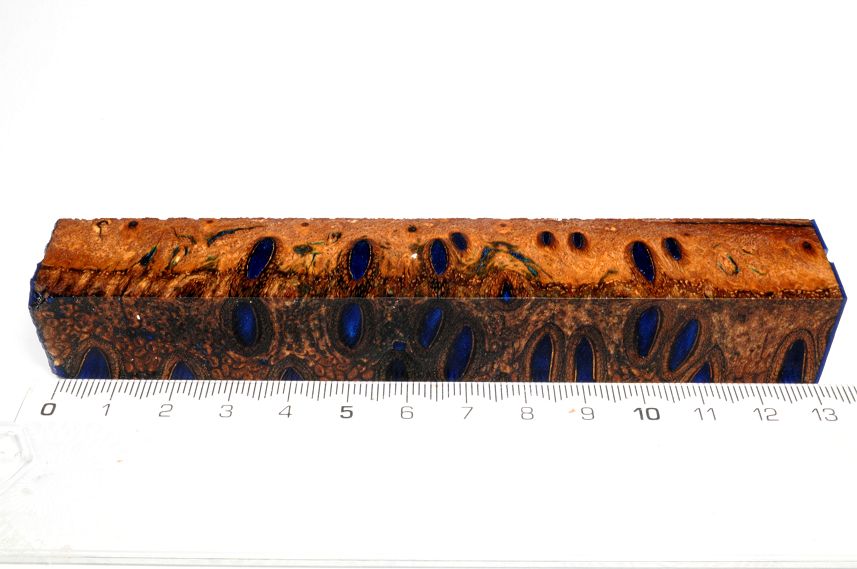Die Samenöffnungen wurden mit gefärbtem Kunstharz unter Vakuum verfüllt und zu Pen Blanks verarbeitet