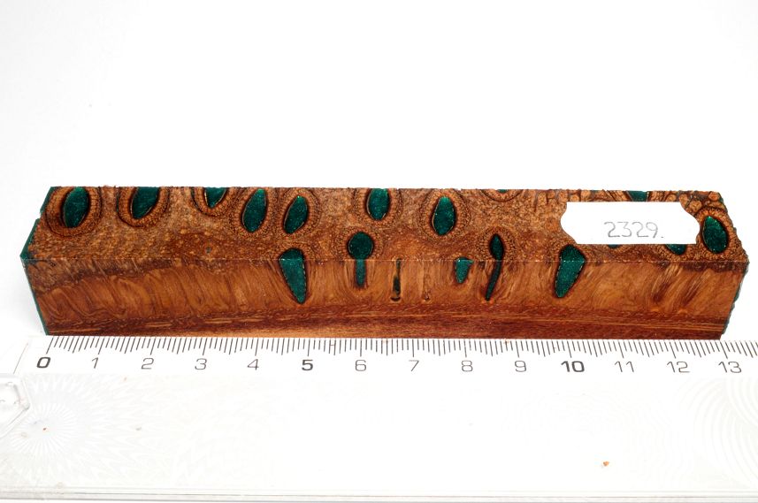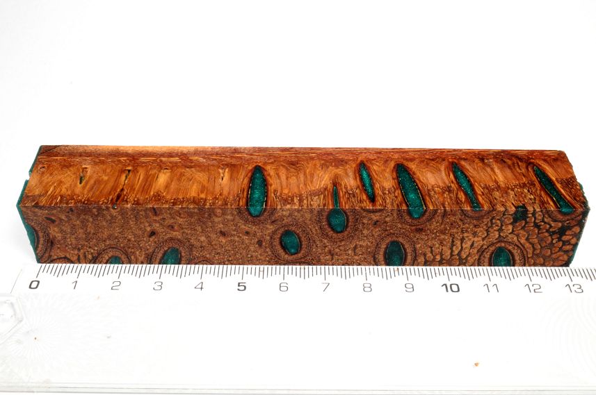 Die Samenöffnungen wurden mit gefärbtem Kunstharz unter Vakuum verfüllt und zu Pen Blanks verarbeitet