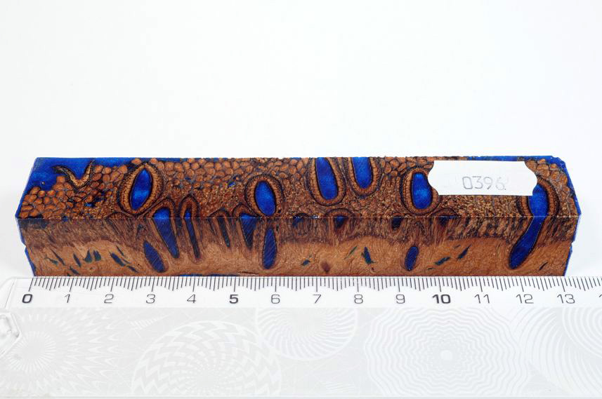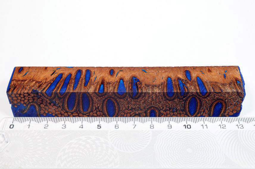 Die Samenöffnungen wurden mit gefärbtem Kunstharz unter Vakuum verfüllt und zu Pen Blanks verarbeitet