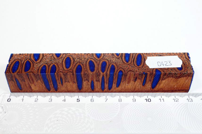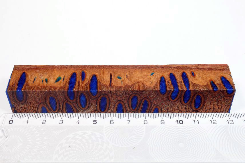 Die Samenöffnungen wurden mit gefärbtem Kunstharz unter Vakuum verfüllt und zu Pen Blanks verarbeitet