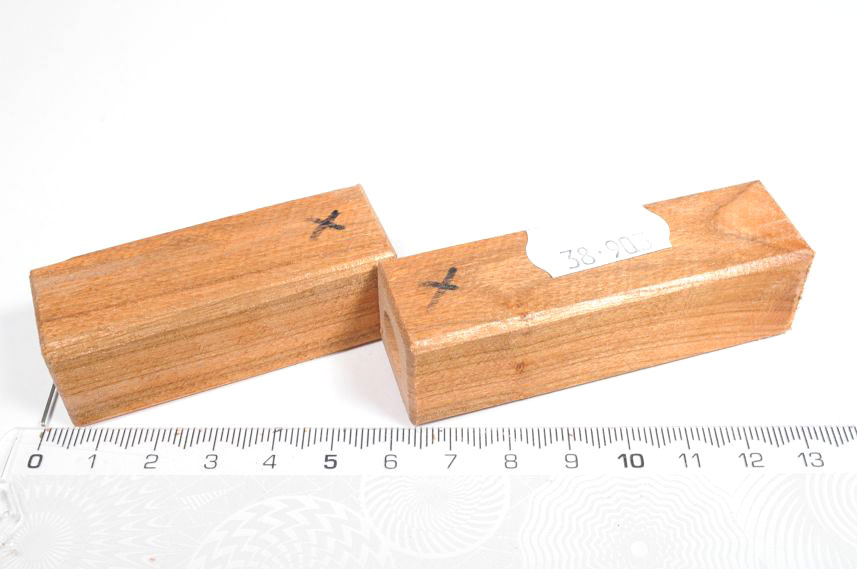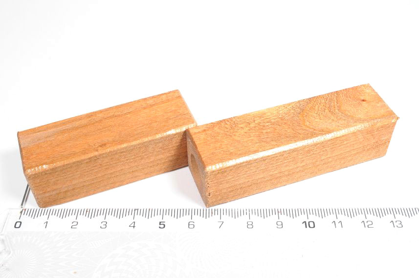 Markierung: Um den Maserverlauf beim fertigen Schreibgerät zu gewährleisten sind Markierungen auf den Pen Blanks aufgebracht. Bitte beachten Sie, dass Sie das Messingröhrchen für den Schaft richtig herum einkleben (das Innengewinde muss zur Strich-Markierung hin ausgerichtet werden).