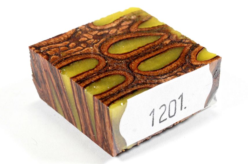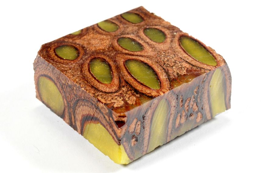 Blank: Die Samenöffnungen des Banksiazapfens wurden unter Vakuum mit gefärbtem Kunstharz verfüllt.