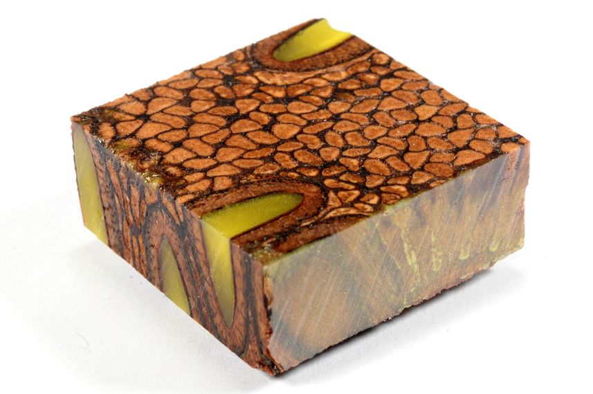 Blank: Die Samenöffnungen des Banksiazapfens wurden unter Vakuum mit gefärbtem Kunstharz verfüllt.